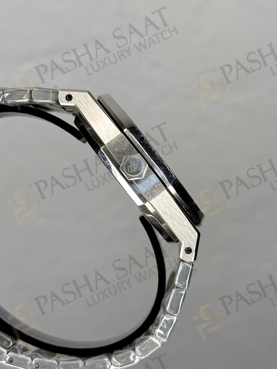 Marka: Audemars Piguet Royal Oak Otomatik Cinsiyet: Erkek Kadran Rengi: Siyah Kordon Cinsi: Çelik Kasa Çapı: 41 mm Kasa: Çelik Cam Cinsi: Safir Cam Makine Cinsi: SWISS Audemars Piguet 3120 Automatic Movement 28800bph Fonksiyonlar: Tüm Fonksiyonlar Aktif Takvim: Var Garanti: 2 Yıl Mekanizma Garantilidir