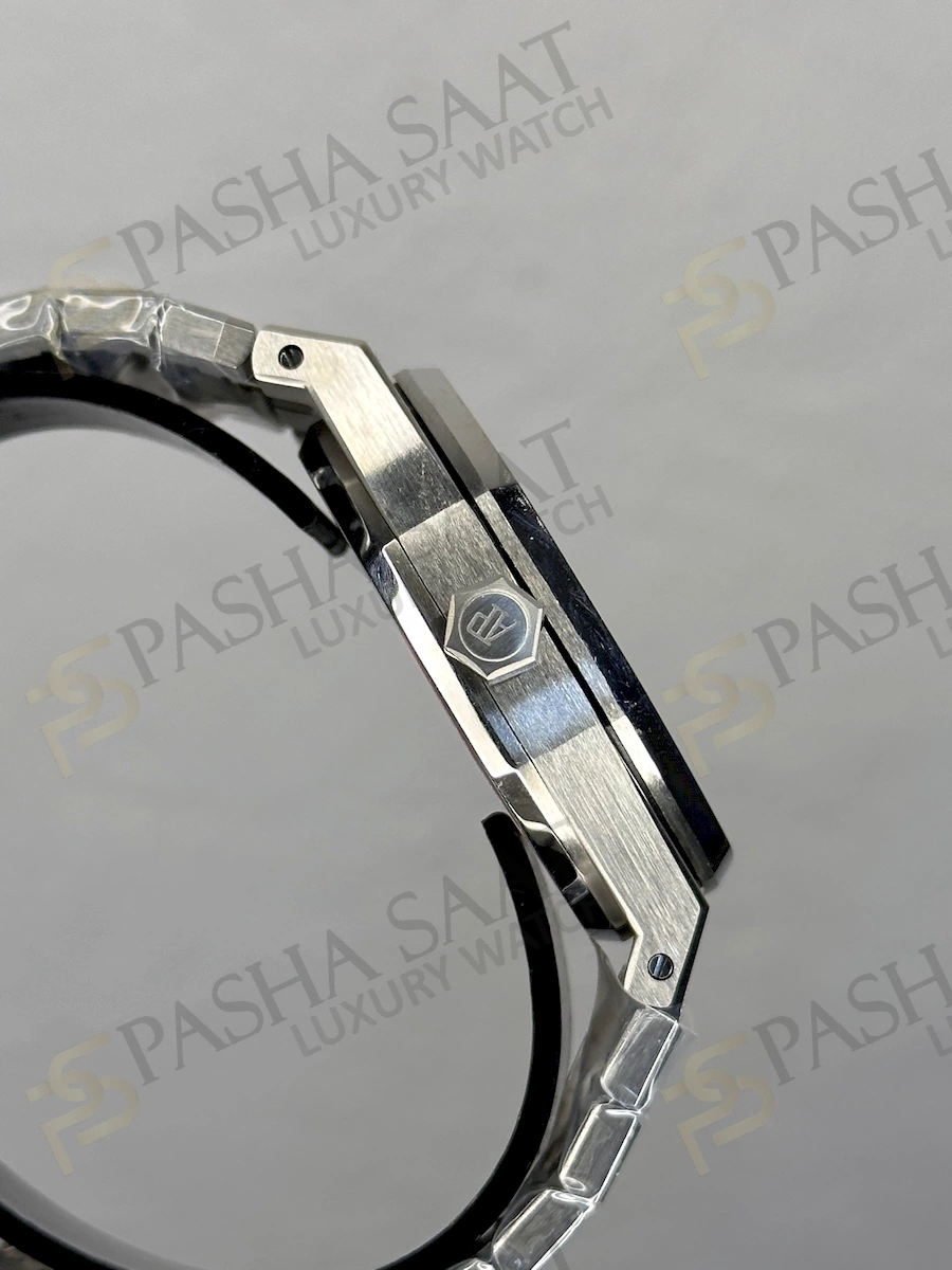 Marka: Audemars Piguet Royal Oak Otomatik Cinsiyet: Erkek Kadran Rengi: Siyah Kordon Cinsi: Çelik Kasa Çapı: 41 mm Kasa: Çelik Cam Cinsi: Safir Cam Makine Cinsi: SWISS Audemars Piguet 3120 Automatic Movement 28800bph Fonksiyonlar: Tüm Fonksiyonlar Aktif Takvim: Var Garanti: 2 Yıl Mekanizma Garantilidir