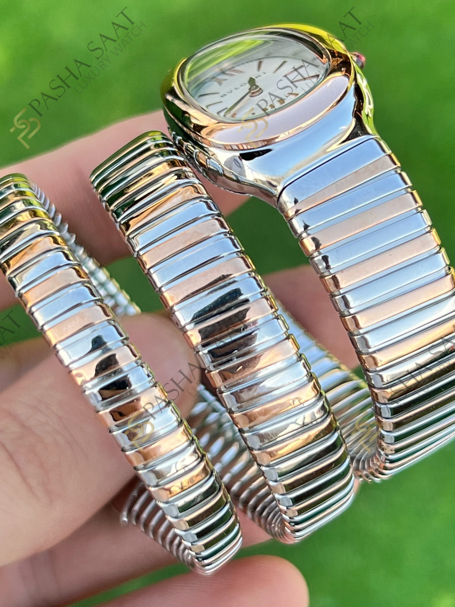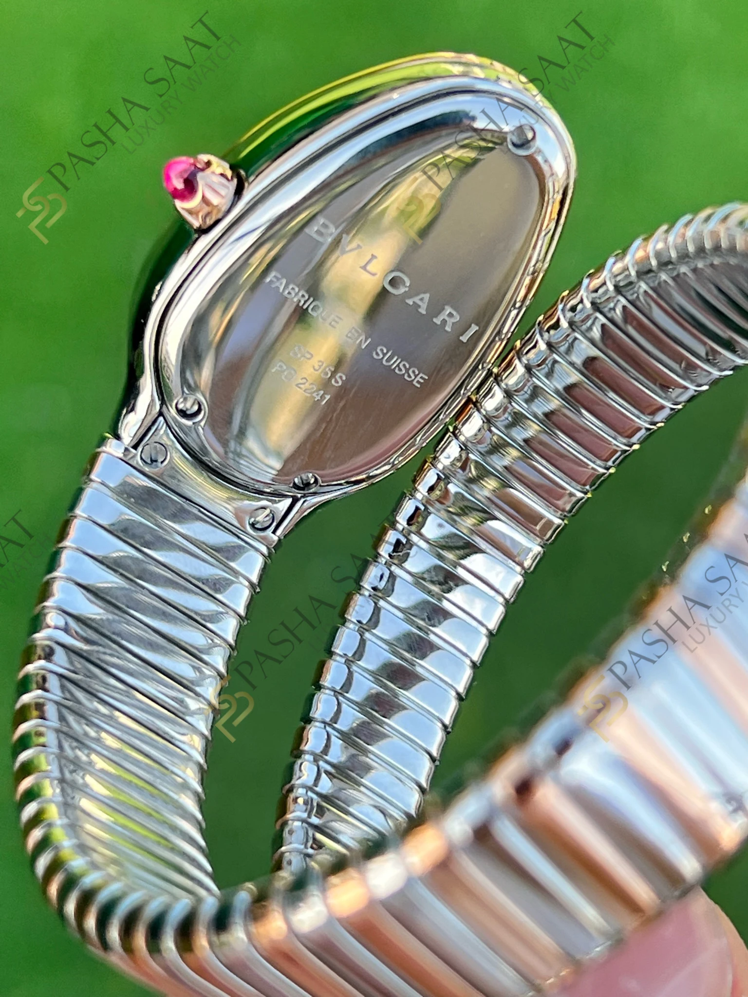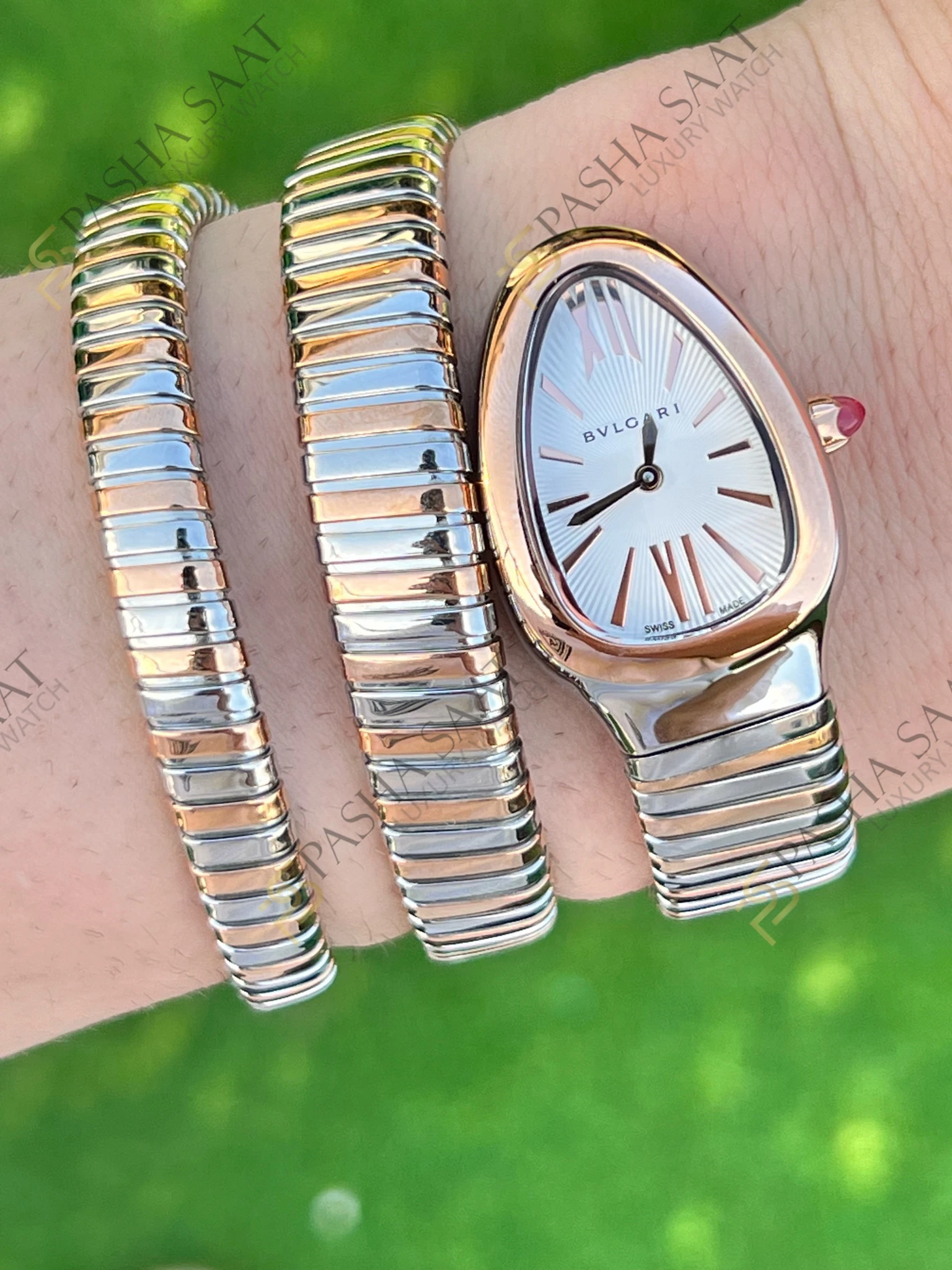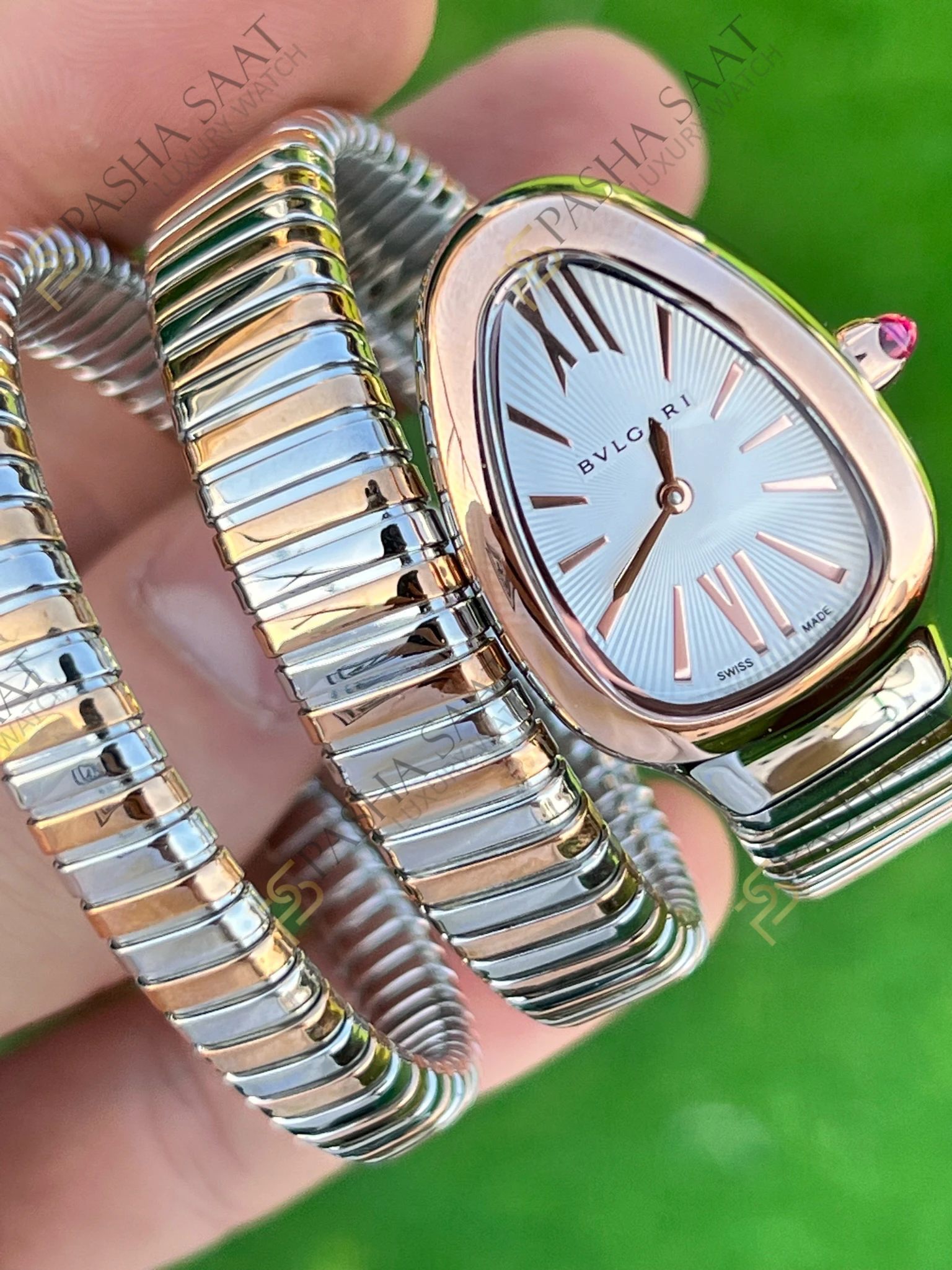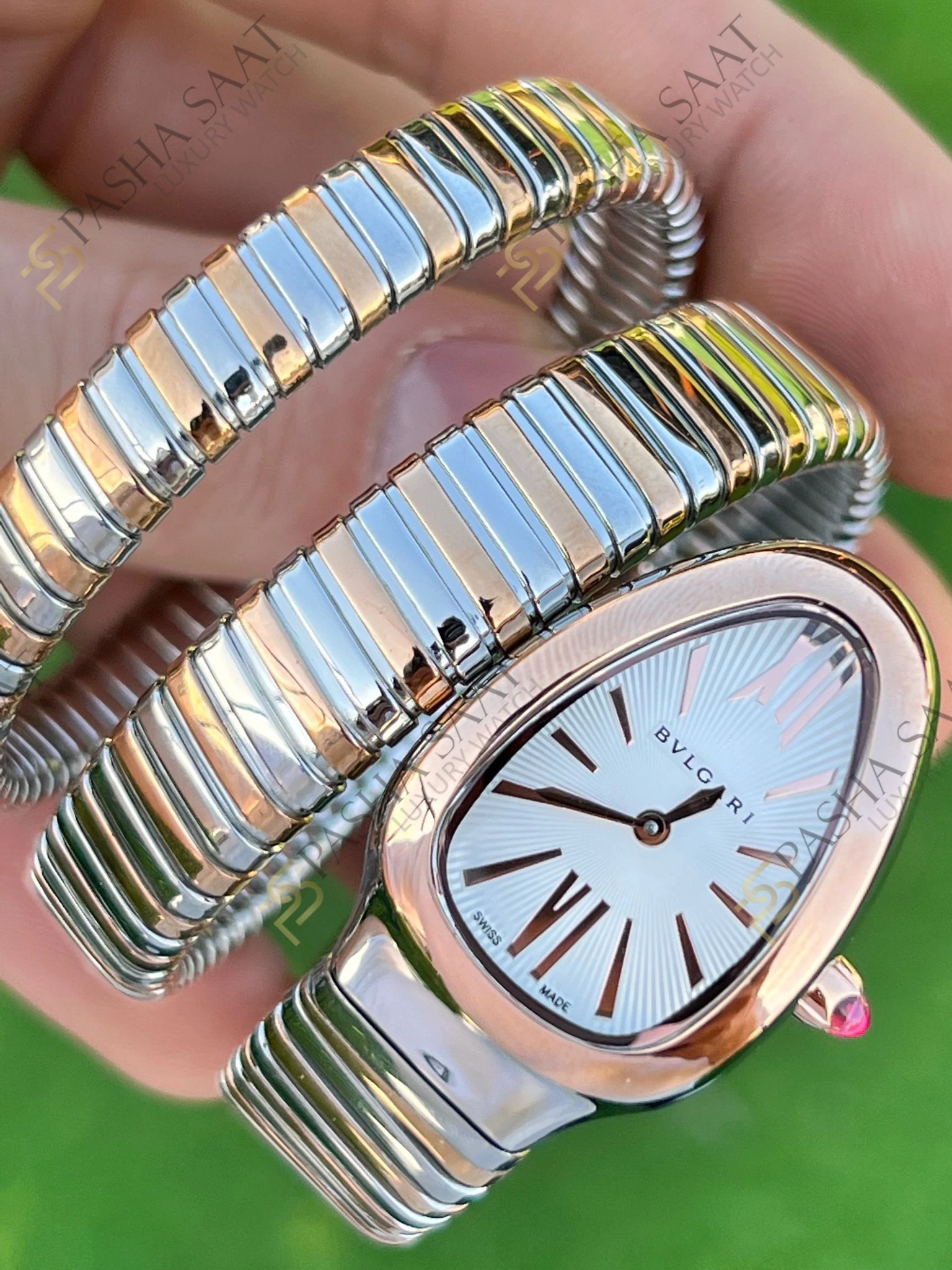 Bvlgari, Serpenti, Kadın Saati, Çelik Saat, Rose Altın, Eta Mekanizma, Lüks Saat, İtalyan Saat, Beyaz Kadran, Tasarım Saat.
