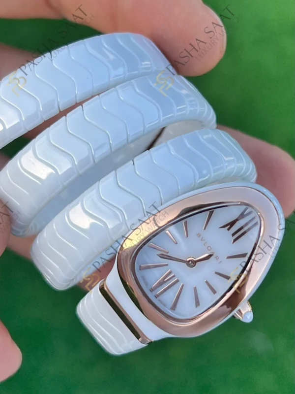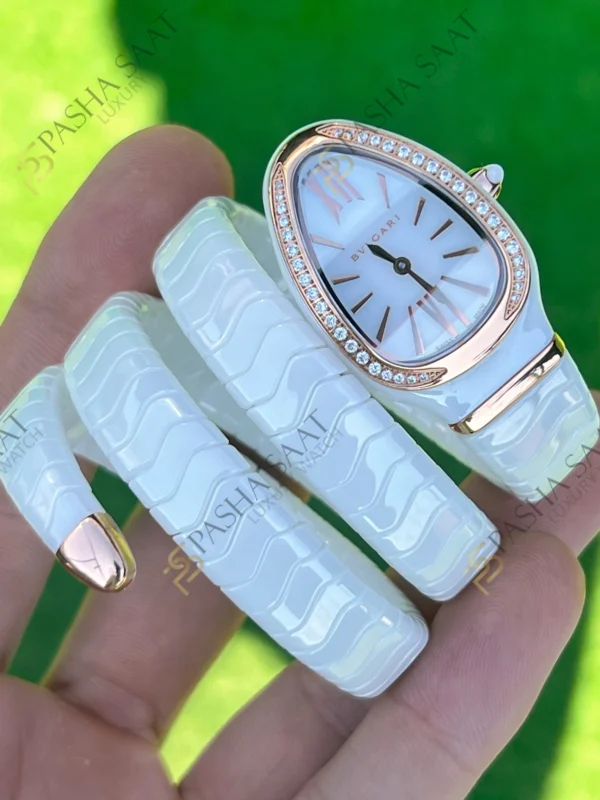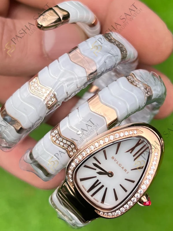 • Bvlgari Serpenti Beyaz Seramik Rose Taşlı Bezel Superclone Kadın Saati