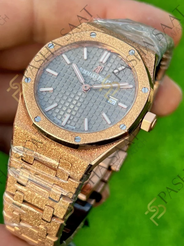 **Audemars Piguet Royal Oak Lady 33 Frosted Rose Gold Beyaz Kadran Quartz Eta Saat: Zarafet ve İhtişamın Buluştuğu An** Audemars Piguet, İsviçre saatçiliğinin zirvesindeki bir marka olarak, yenilikçi tasarımları ve kusursuz işçiliğiyle bilinir. Royal Oak koleksiyonu ise, markanın ikonikleşmiş tasarımlarından biridir ve sportif şıklığı lüksle bir araya getirir. Bu bağlamda, […]