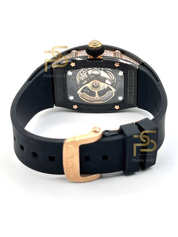 Marka: Richard Mille Rm 037 Black Case Eta Saat Cinsiyet: Bayan Kadran Rengi: Siyah Kadran Kordon Cinsi: Silikon Kasa Çapı: 45 Mm Kasa: 904l Paslanmaz Çelik Cam Cinsi: Safir Cam Makine Cinsi: 9015 Cal. Fonksiyonlar: Tüm Fonksiyonlar Aktif Takvim: Var Garanti: 2 Yıl Mekanizma Garantilidir