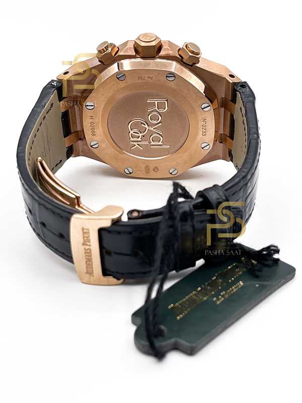 Marka: Royal Oak Chrono Rose Gold Chocolate 41mm Cinsiyet: Erkek Kadran Rengi: Siyah Kordon Cinsi: Deri Kasa Çapı: 41 mm Kasa: Seramik Cam Cinsi: Safir Cam Makine Cinsi: SWISS Audemars Piguet 7750 Automatic Movement 28800bph Fonksiyonlar: Tüm Fonksiyonlar Aktif Takvim: Var Garanti: 2 Yıl Mekanizma Garantilidir
