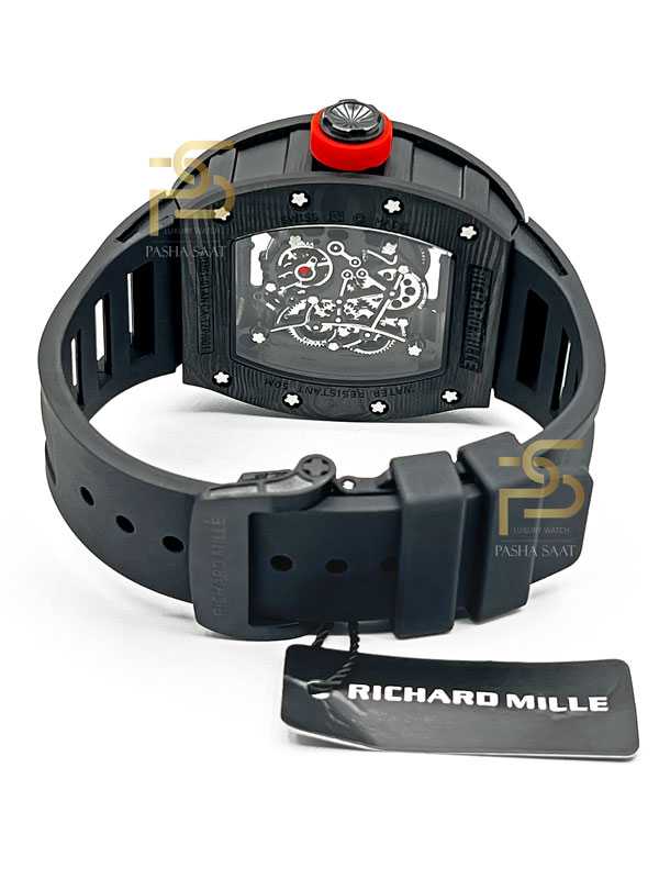 Marka: RM051-01 Carbon Watch Cinsiyet: Erkek Kadran Rengi: Saydam Kordon Cinsi: Kauçuk Kasa Çapı: 41mm x 50.5mm x 18mm Kasa: Karbon Kasa Cam Cinsi: Safir Cam Makine Cinsi: SWISS ETA M8215 Automatic Movement 28800bph Fonksiyonlar: Tüm Fonksiyonlar Aktif Takvim: Var Garanti: 2 Yıl Mekanizma Garantilidir