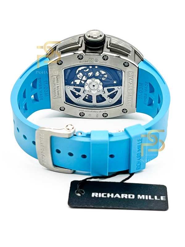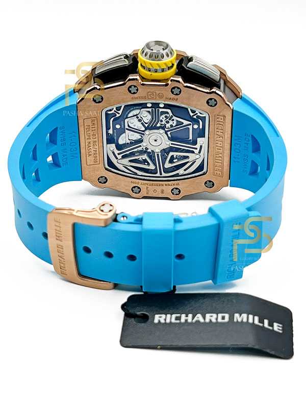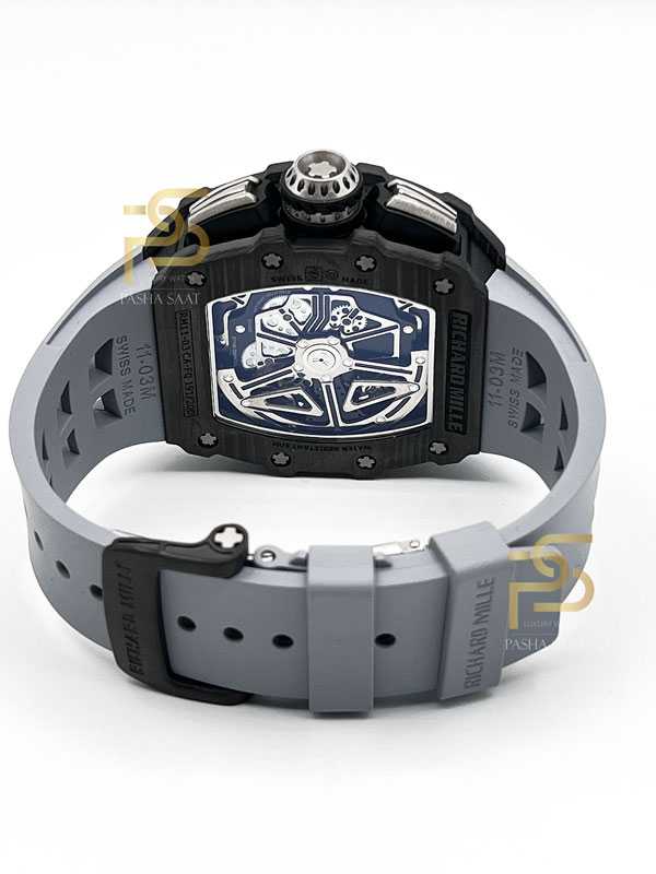 Marka: Richard Mille Titanium RM11-03 Cinsiyet: Erkek Kadran Rengi: Saydam Kordon Cinsi: Kauçuk Kasa Çapı: 41mm x 50.5mm x 18mm Kasa: Çelik Cam Cinsi: Safir Cam Makine Cinsi: SWISS ETA 7750 Automatic Movement 28800bph Fonksiyonlar: Tüm Fonksiyonlar Aktif Takvim: Var Garanti: 2 Yıl Mekanizma Garantilidir
