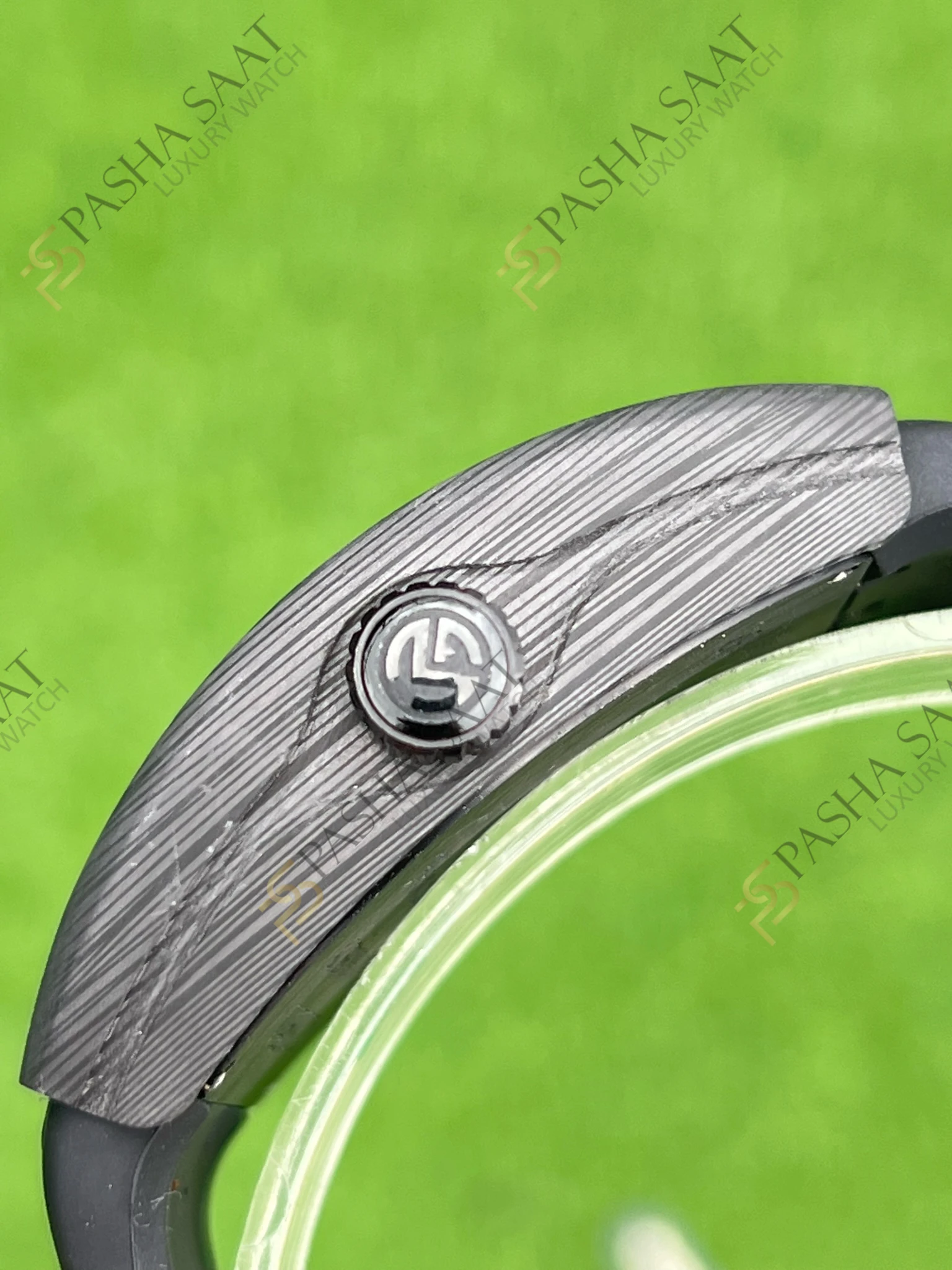 **Franck Muller**, ikonik Curvex kasa tasarımı ile tanınır. **Vanguard** modeli, bu eşsiz tasarımı daha sportif ve modern bir yorumla sunar. Karbon kasanın hafifliği ve dayanıklılığı, saati aktif bir yaşam tarzı olanlar için ideal hale getirir. Beyaz rakamlar, kadranın kontrastını artırarak okunabilirliği kolaylaştırırken saate şık bir dokunuş katar. Saatin genel tasarımı, zarafet ve performansı bir araya getirerek sahibine özgüvenli bir görünüm kazandırır.