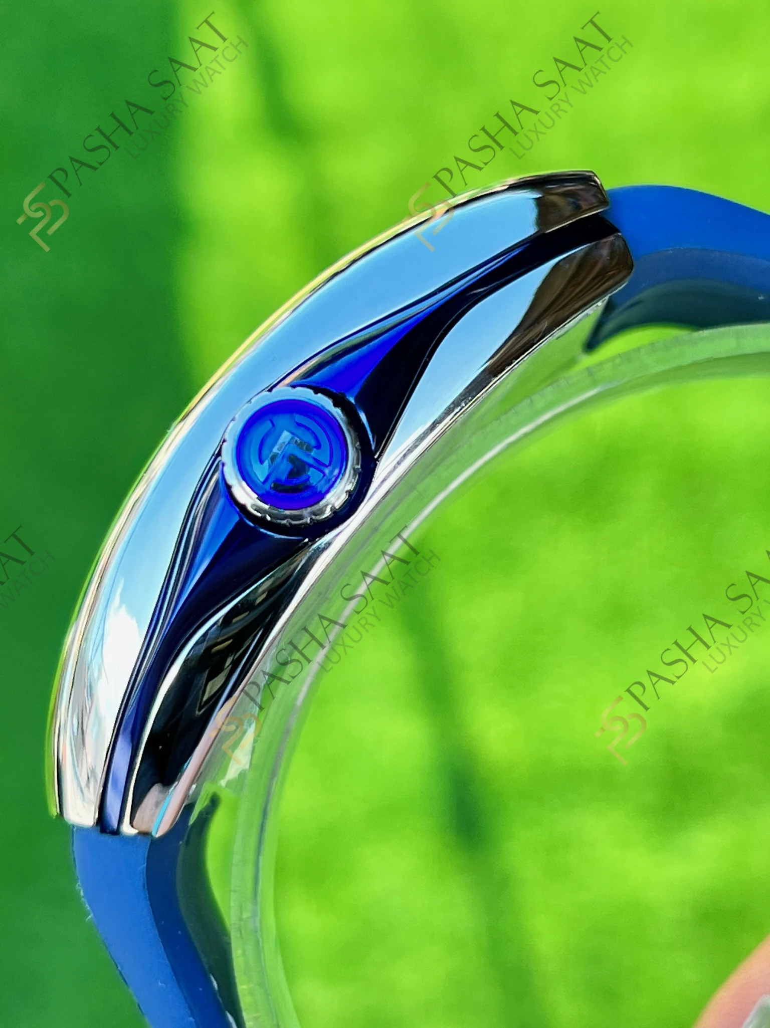 Bu saat, etkileyici **V45 kasa** tasarımıyla dikkat çekiyor. Kavisli hatları ve cesur boyutu (45mm) ile bilekte güçlü bir duruş sergileyen kasa, yüksek kaliteli paslanmaz çelikten üretilmiş ve mükemmel işçiliğiyle öne çıkıyor. Kasanın yüzeyi, parlak bir görünüm sunarken, çizilmelere karşı da dayanıklılık sağlıyor. Saatin karakteristik özelliği olan **mavi kordon**, kauçuk üzerine uygulanan kumaş dokusuyla hem sportif hem de şık bir hava katıyor. Mavi rengin denizle olan güçlü bağı, saat tutkunlarını cezbediyor.