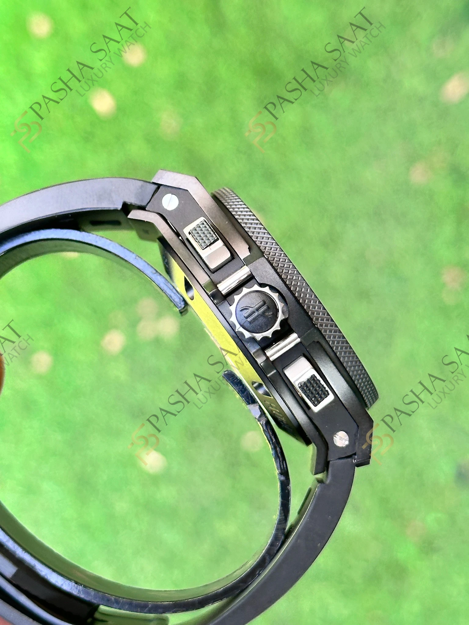 * **Kayış:** Siyah kauçuk kayış, konforlu bir kullanım sağlarken, saatin sportif ve şık görünümünü tamamlar. Kayış, paslanmaz çelik toka ile güvenli bir şekilde bileğe sabitlenir.