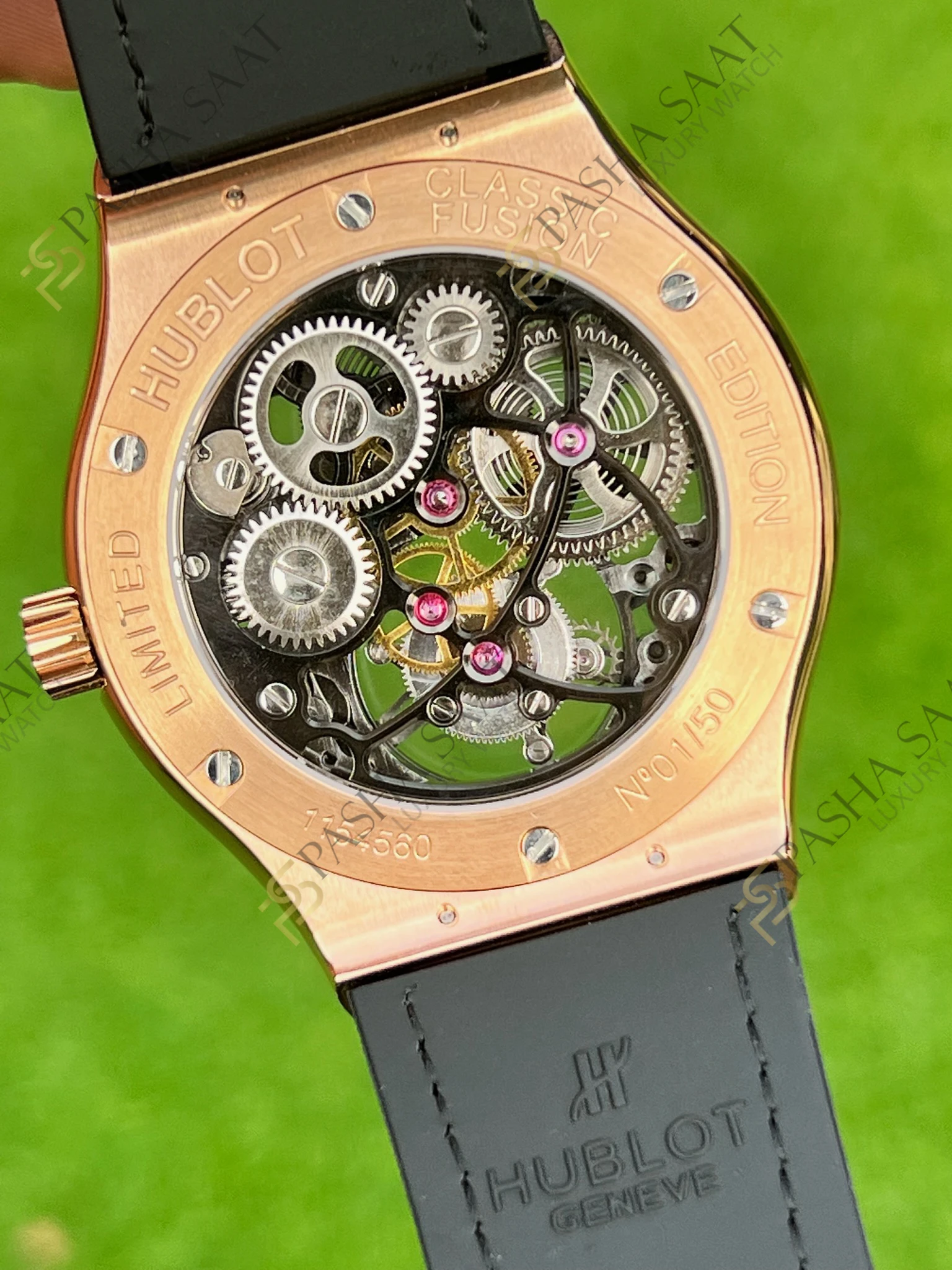**Hublot Classic Fusion** serisi, markanın özgün tasarım dilini yansıtır. Bu **superclone saat** de, ikonik kasa şekli, belirgin vidaları ve iskelet kadranıyla dikkat çeker. Rose gold’un sıcaklığı, saatin lüks ve prestijli havasını artırır. İskelet kadran, saatin içindeki mekanik harikayı sergileyerek, her bakışta hayranlık uyandırır.