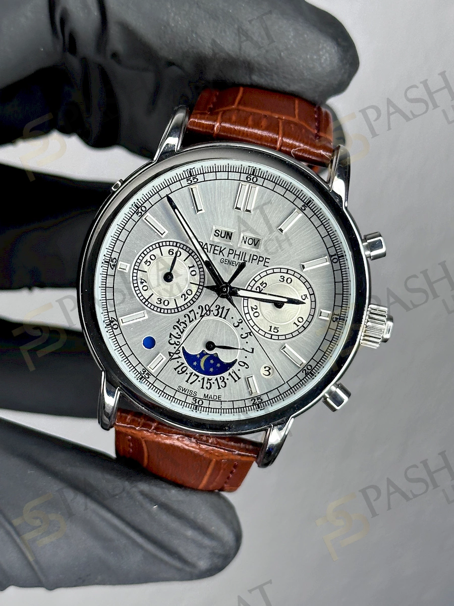 Marka: Patek Philippe Erkek Kahverengi Deri Kordon Klasik Saat