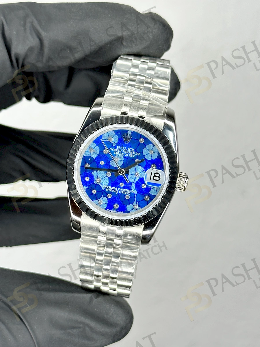 Marka: Rolex Datejust 31 Çelik Mavi Çiçek Desenli Kadın Saati